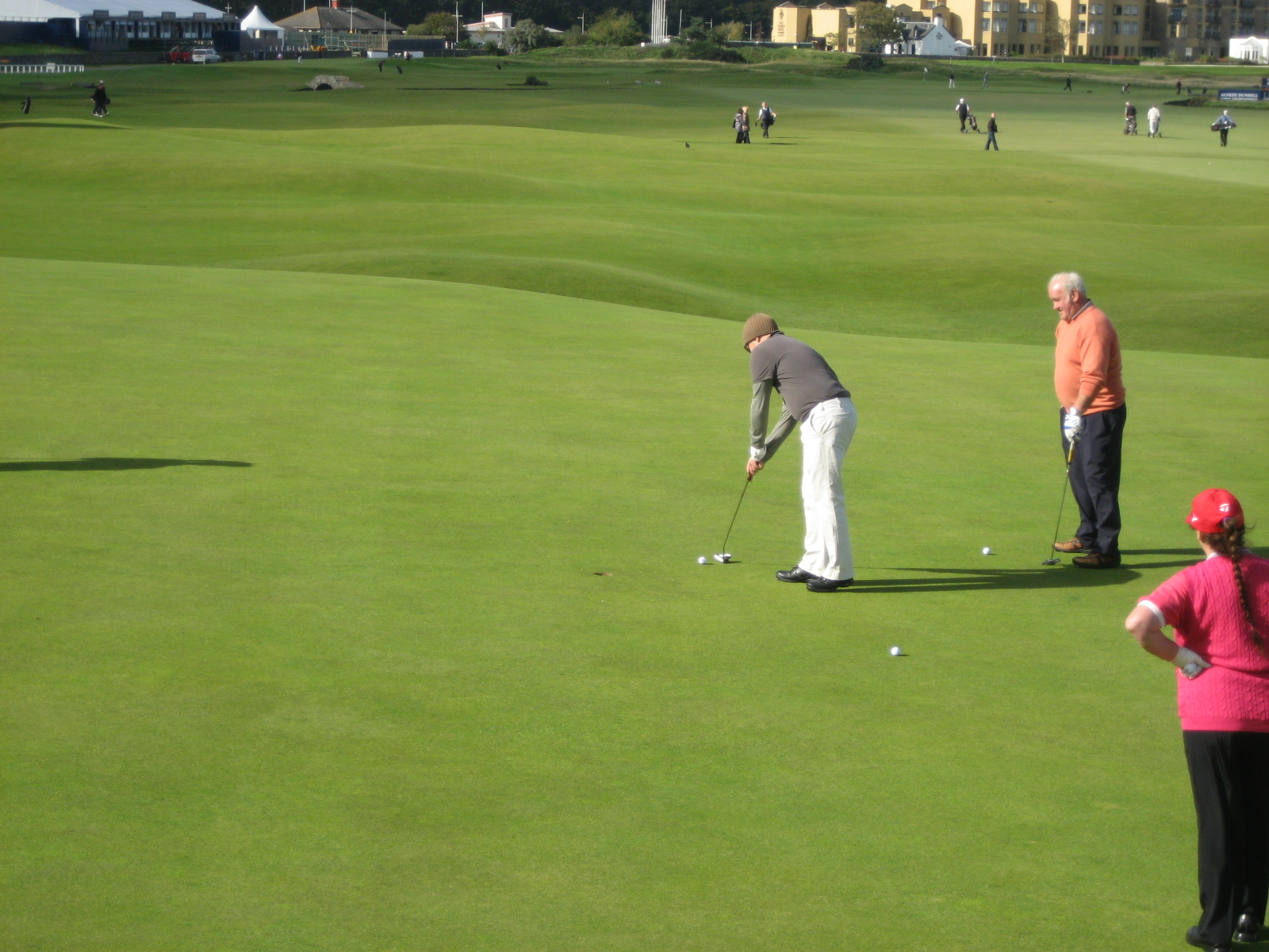 We checked into our quaint B&B which happened to be right next to St. Andrew's golf course. This is a famous golf course and a major event in the PGA. Joe wanted desperately to golf the course, but as we had read and been told, the odds of getting on were pretty slim. Joe would have to wake up very early in the morning and stand in a line and hope that there would be a party of three that would need a fourth to golf with them.